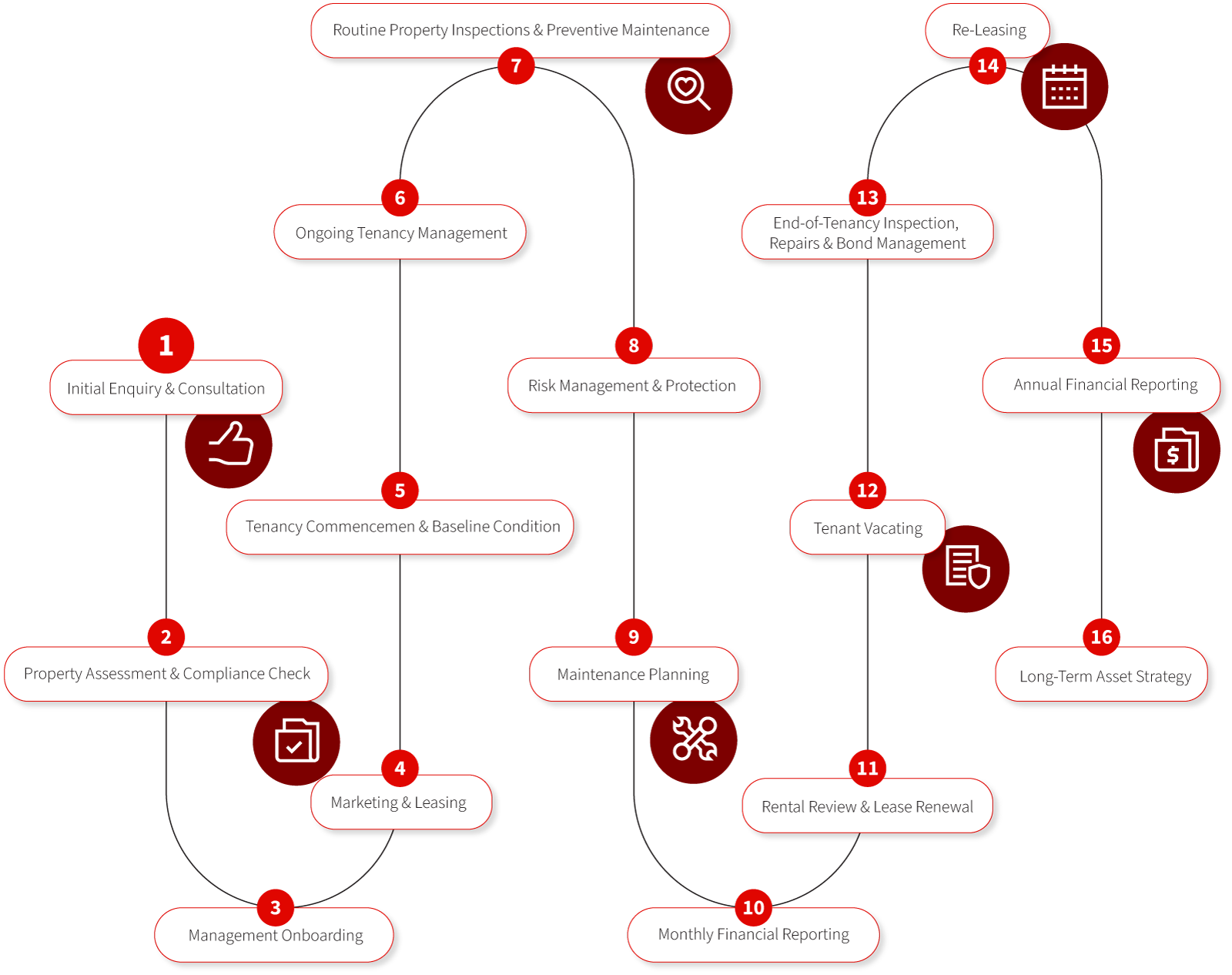 Lease renewals and rent adjustments are managed with an asset-first mindset — supporting consistent income and reduced turnover. Your journey is designed to minimise friction, provide transparency, and give you confidence at every stage.